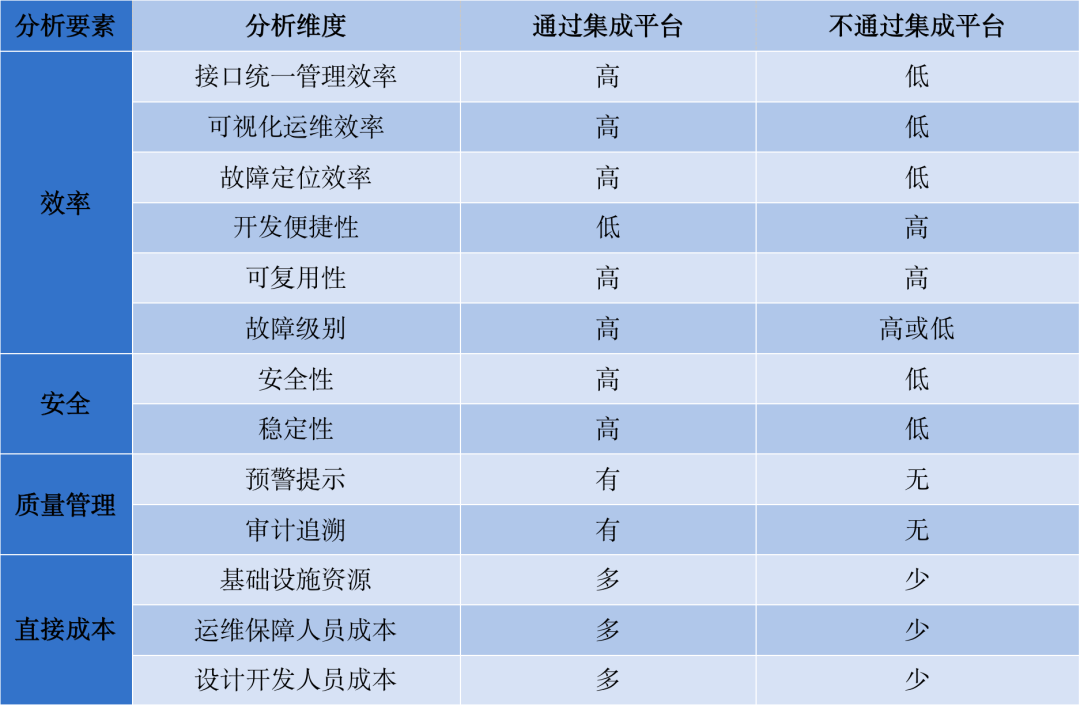 表1 系统间接口交互是否通过集成平台的价值分析对比
