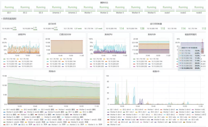 图4 一体化集群架构集成平台—部分指标监控示意图