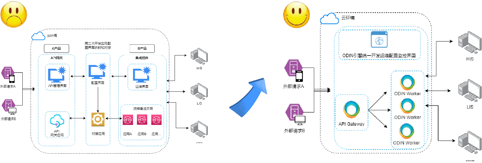 集成平台的一大作用是提高接口复用,统一医疗机构的服务交互标准,解耦和清晰各系统的服务职责,采用面向API进行交互设计和开发实现,能有效达到此效果,并且集成平台如果具备了API和流程集成的无缝联动能力,将会大大提升这种效果。