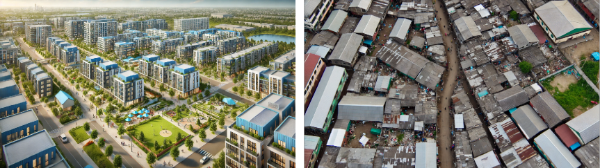 左图:一体化集群(有整体规划的现代化社区) 右图:“散装”集群(老旧小区、城中村)