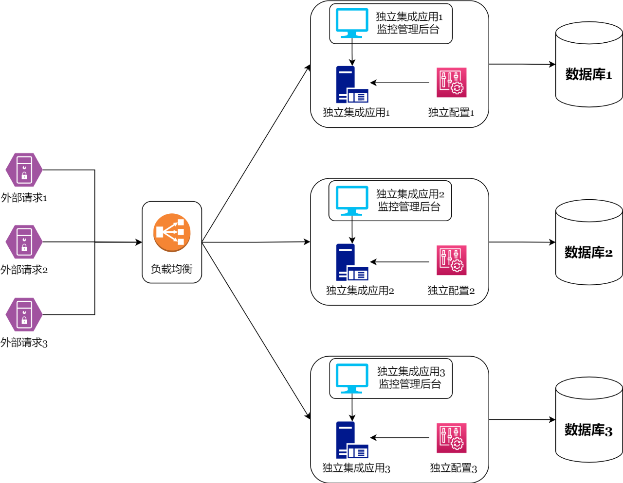 分布式云原生集群采用微服务架构,不仅是系统本身而且还把运行在系统中的每个集成业务进行独立拆分成容器化,可在私有云、公有云、混合云环境中自由灵活部署,并且支持跨云或跨地域的弹性伸缩。计算、存储、消息等核心组件均采用分布式架构,具备应用级的运行隔离能力,可实现单应用的资源分配(cpu核数、内存量等),达到每个集成业务之间运行互不影响,完全独立,超高可用。