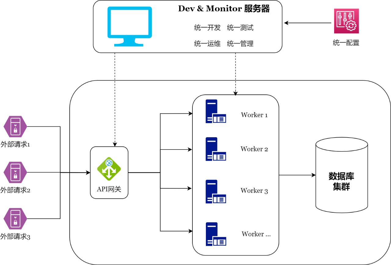 高可用一体化集群通过中央控制节点进行统一调度,协调集群内节点状态,实现开发、测试、监控、运维等的一体化,达到一处配置、多点运行、数据一致的效果。确保高负载状态下的稳定运行,同时遇到故障时能够自动检测与快速切换。此架构下,运维人员可通过统一的中央管理界面进行全部节点的控制,大幅降低运维复杂度。