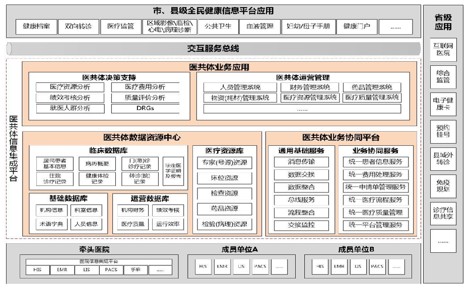 (2)满足医共体业务需求,解决不同医疗机构业务系统的异构问题,实现数据互联互通和业务集成;