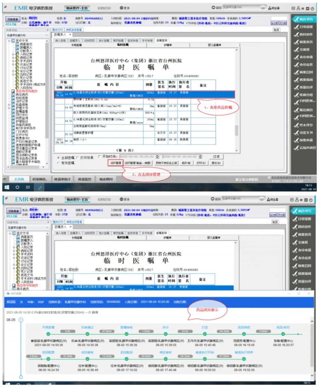 在建设成效方面,医嘱作为闭环管理的核心环节之一,目前笔者所在医院无需从数据中心调用,即可直接在护士站、医生站读取并快速修改,实现临床过程中对相关闭环信息的实时查看和改进(如图2所示)。